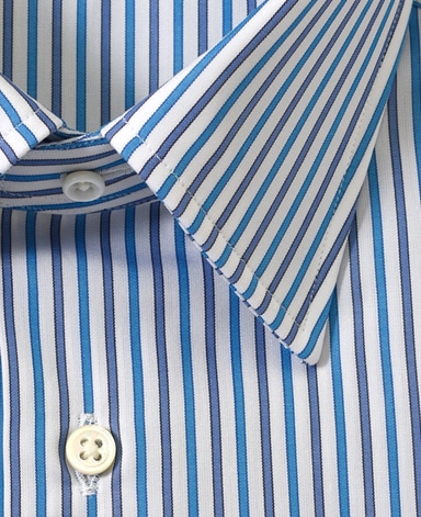通常針目は3cmに18針以上で高級とされていますが、私たちのシャツは21針で縫い上げられています。また、耐久性に優れた「巻き伏せ本縫い」でシャツを仕立てています。