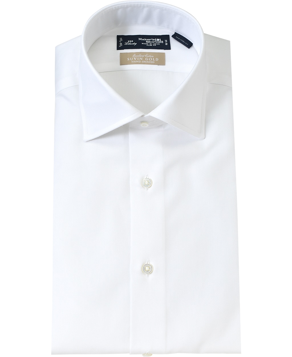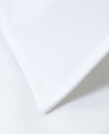 ■襟の表裏のパターンに差をつけ、コンパクトかつ構築的な襟を実現。品の良いドレスシャツの証である、首に巻きつくような 内巻きフォルムは、匠によるいせ込み技術の成果です。