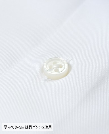 通常針目は3cmに18針以上で高級とされていますが、私たちのシャツは21針で縫い上げられています。また、耐久性に優れた「巻き伏せ本縫い」でシャツを仕立てています。
