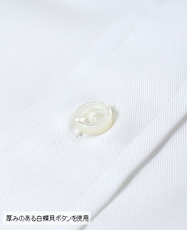 通常針目は3cmに18針以上で高級とされていますが、私たちのシャツは21針で縫い上げられています。また、耐久性に優れた「巻き伏せ本縫い」でシャツを仕立てています。