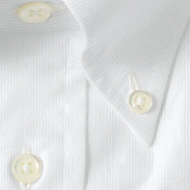 襟とカフスの芯地は接着剤で固めず、首と手首に優しくフィットするよう綿のフラシ芯を使用しています。美しい輝きを放つ天然高瀬貝釦