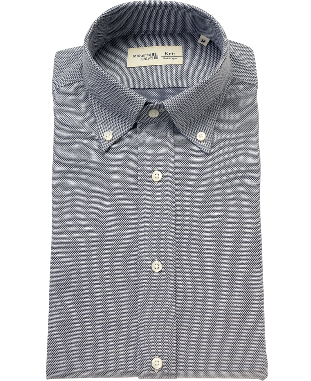 高密度ニット生地はドレスシャツと見間違うほどの美しさ。