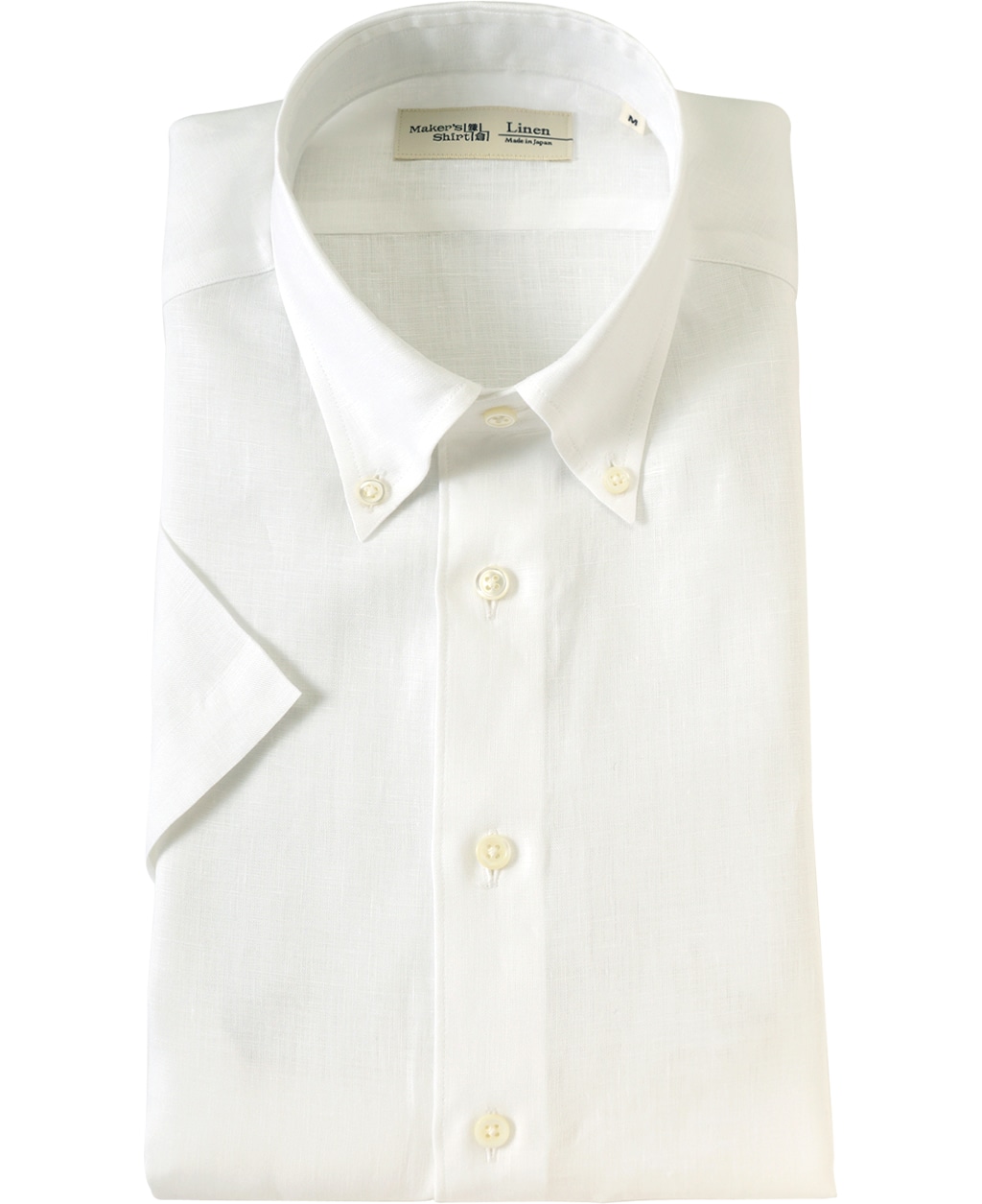 リネンシャツならではのシワ感と光沢はこの季節のみ楽しむことのできる贅沢。