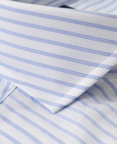通常針目は3cmに18針以上で高級とされていますが、私たちのシャツは21針で縫い上げられています。また、耐久性に優れた「巻き伏せ本縫い」でシャツを仕立てています。