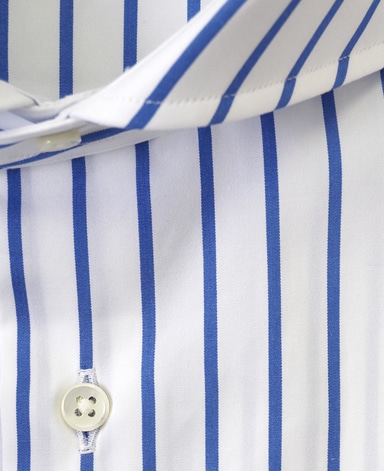 通常針目は3cmに18針以上で高級とされていますが、私たちのシャツは21針で縫い上げられています。また、耐久性に優れた「巻き伏せ本縫い」でシャツを仕立てています。