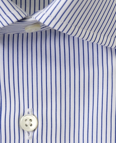 ■襟の表裏のパターンに差をつけ、コンパクトかつ構築的な襟を実現。品の良いドレスシャツの証である、首に巻きつくような内巻きフォルムは、匠によるいせ込み技術の成果です。