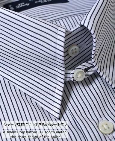 ■第一ボタンには、シャープな襟に合う小さめの9mmボタンを使用。