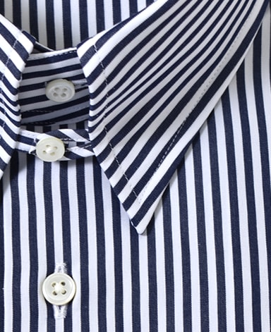 通常針目は3cmに18針以上で高級とされていますが、私たちのシャツは21針で縫い上げられています。また、耐久性に優れた「巻き伏せ本縫い」でシャツを仕立てています。