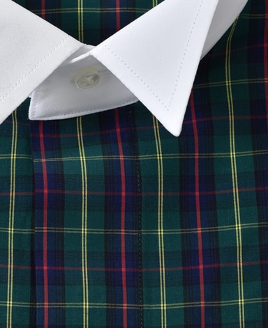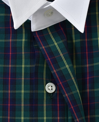 ■襟の表裏のパターンに差をつけ、コンパクトかつ構築的な襟を実現。品の良いドレスシャツの証である、首に巻きつくような内巻きフォルムは、匠によるいせ込み技術の成果です。