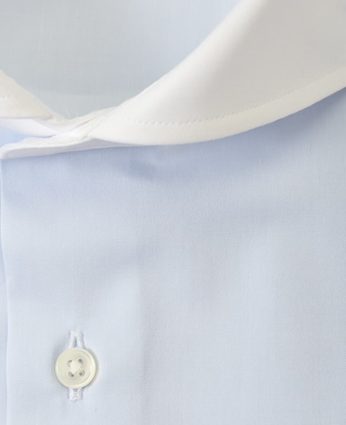 ■襟の表裏のパターンに差をつけ、コンパクトかつ構築的な襟を実現。品の良いドレスシャツの証である、首に巻きつくような内巻きフォルムは、匠によるいせ込み技術の成果です。