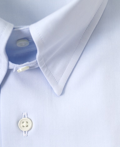 ■襟の表裏のパターンに差をつけ、コンパクトかつ構築的な襟を実現。品の良いドレスシャツの証である、首に巻きつくような内巻きフォルムは、匠によるいせ込み技術の成果です。