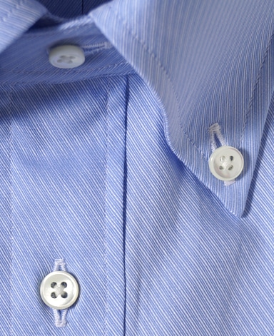 通常針目は3cmに18針以上で高級とされていますが、私たちのシャツは21針で縫い上げられています。また、耐久性に優れた「巻き伏せ本縫い」でシャツを仕立てています。