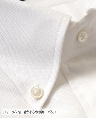 ■第一ボタンには、シャープな襟に合う小さめの9mmボタンを使用。