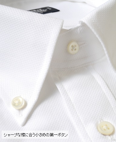 ■第一ボタンには、シャープな襟に合う小さめの9mmボタンを使用。
