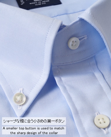 ■第一ボタンには、シャープな襟に合う小さめの9mmボタンを使用。