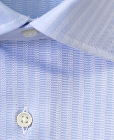 通常針目は3cmに18針以上で高級とされていますが、私たちのシャツは21針で縫い上げられています。また、耐久性に優れた「巻き伏せ本縫い」でシャツを仕立てています。