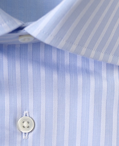 通常針目は3cmに18針以上で高級とされていますが、私たちのシャツは21針で縫い上げられています。また、耐久性に優れた「巻き伏せ本縫い」でシャツを仕立てています。