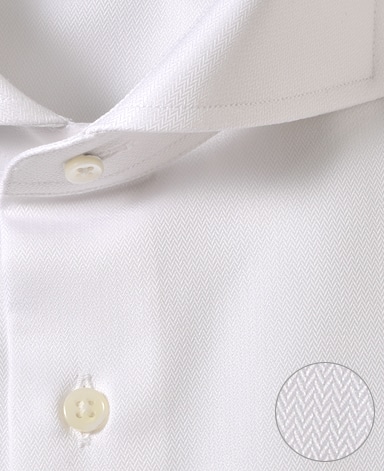 ■襟の表裏のパターンに差をつけ、コンパクトかつ構築的な襟を実現。品の良いドレスシャツの証である、首に巻きつくような内巻きフォルムは、匠によるいせ込み技術の成果です。
