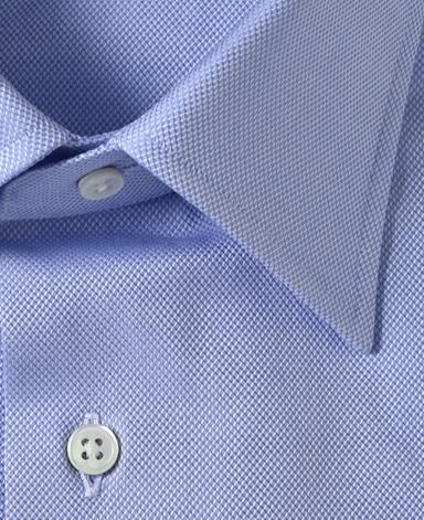 ■襟の表裏のパターンに差をつけ、コンパクトかつ構築的な襟を実現。品の良いドレスシャツの証である、首に巻きつくような内巻きフォルムは、匠によるいせ込み技術の成果です。