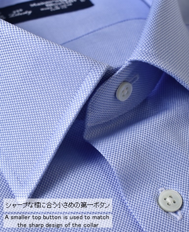 通常針目は3cmに18針以上で高級とされていますが、私たちのシャツは21針で縫い上げられています。また、耐久性に優れた「巻き伏せ本縫い」でシャツを仕立てています。