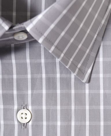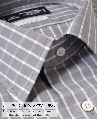 ■襟の表裏のパターンに差をつけ、コンパクトかつ構築的な襟を実現。品の良いドレスシャツの証である、首に巻きつくような内巻きフォルムは、匠によるいせ込み技術の成果です。