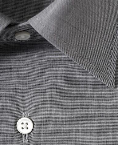 ■襟の表裏のパターンに差をつけ、コンパクトかつ構築的な襟を実現。品の良いドレスシャツの証である、首に巻きつくような内巻きフォルムは、匠によるいせ込み技術の成果です。