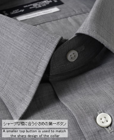 ■第一ボタンには、シャープな襟に合う小さめの9mmボタンを使用。