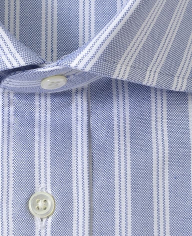 通常針目は3cmに18針以上で高級とされていますが、私たちのシャツは21針で縫い上げられています。また、耐久性に優れた「巻き伏せ本縫い」でシャツを仕立てています。