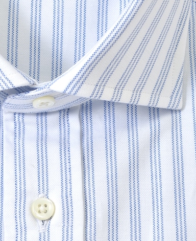 通常針目は3cmに18針以上で高級とされていますが、私たちのシャツは21針で縫い上げられています。また、耐久性に優れた「巻き伏せ本縫い」でシャツを仕立てています。