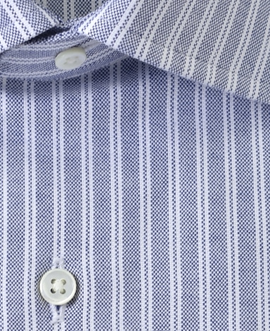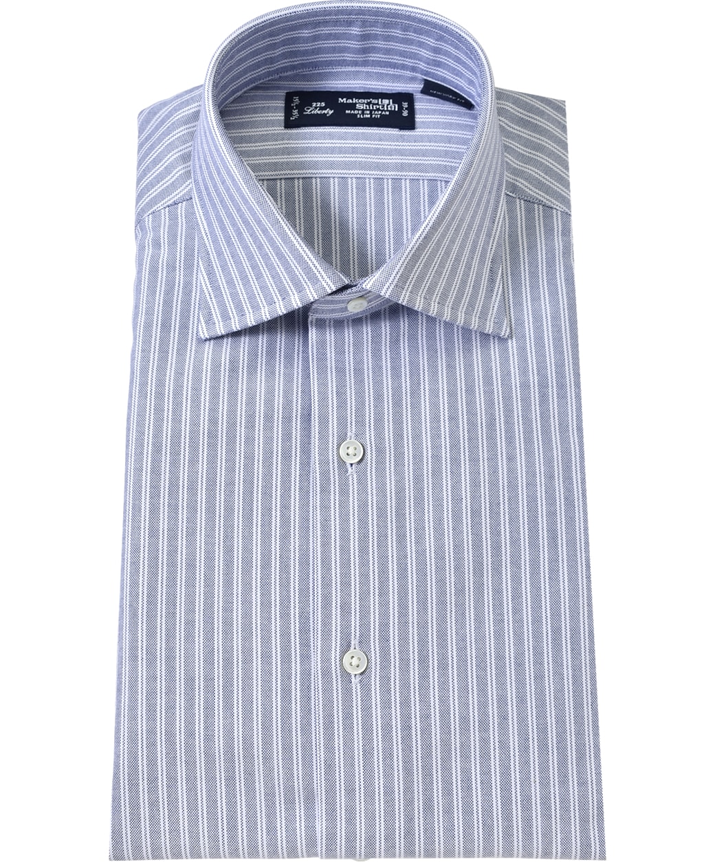 通常針目は3cmに18針以上で高級とされていますが、私たちのシャツは21針で縫い上げられています。また、耐久性に優れた「巻き伏せ本縫い」でシャツを仕立てています。