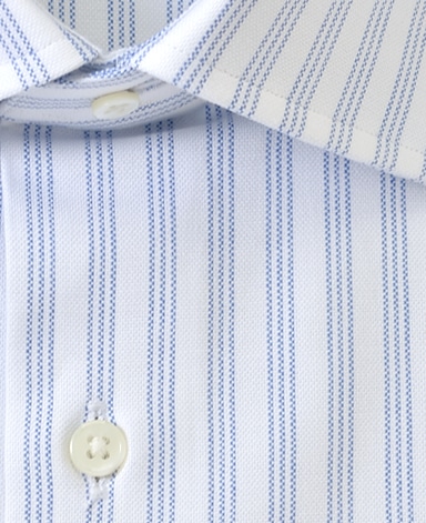■襟の表裏のパターンに差をつけ、コンパクトかつ構築的な襟を実現。品の良いドレスシャツの証である、首に巻きつくような内巻きフォルムは、匠によるいせ込み技術の成果です。