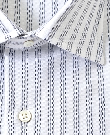 通常針目は3cmに18針以上で高級とされていますが、私たちのシャツは21針で縫い上げられています。また、耐久性に優れた「巻き伏せ本縫い」でシャツを仕立てています。