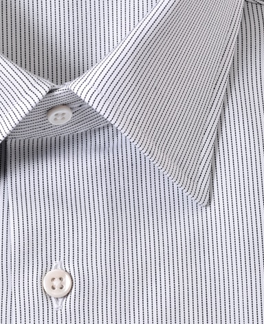 ■襟の表裏のパターンに差をつけ、コンパクトかつ構築的な襟を実現。品の良いドレスシャツの証である、首に巻きつくような内巻きフォルムは、匠によるいせ込み技術の成果です。