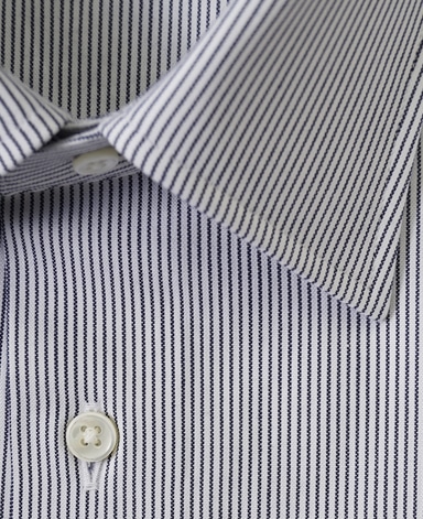■襟の表裏のパターンに差をつけ、コンパクトかつ構築的な襟を実現。品の良いドレスシャツの証である、首に巻きつくような内巻きフォルムは、匠によるいせ込み技術の成果です。