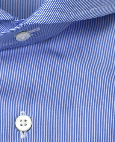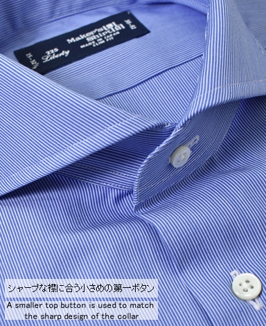 通常針目は3cmに18針以上で高級とされていますが、私たちのシャツは21針で縫い上げられています。また、耐久性に優れた「巻き伏せ本縫い」でシャツを仕立てています。