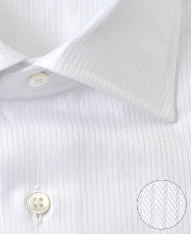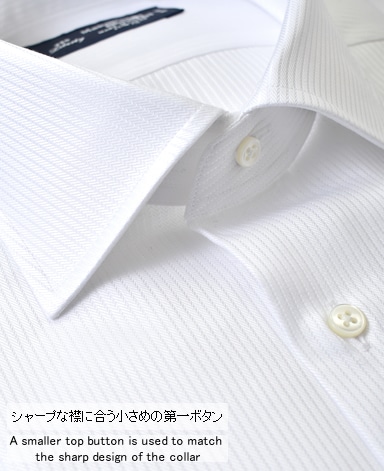 ■襟の表裏のパターンに差をつけ、コンパクトかつ構築的な襟を実現。品の良いドレスシャツの証である、首に巻きつくような内巻きフォルムは、匠によるいせ込み技術の成果です。
