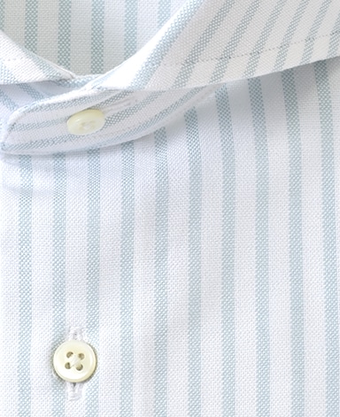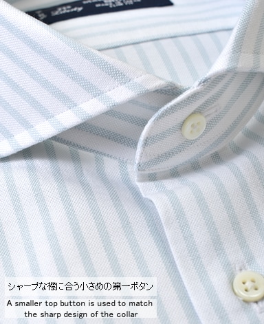 ■襟の表裏のパターンに差をつけ、コンパクトかつ構築的な襟を実現。品の良いドレスシャツの証である、首に巻きつくような内巻きフォルムは、匠によるいせ込み技術の成果です。