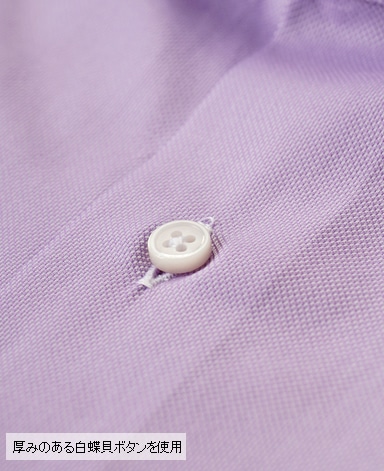 天然白蝶貝使用。その輝きは天然貝の最高級品として世界の高級ドレスシャツに使用されています。