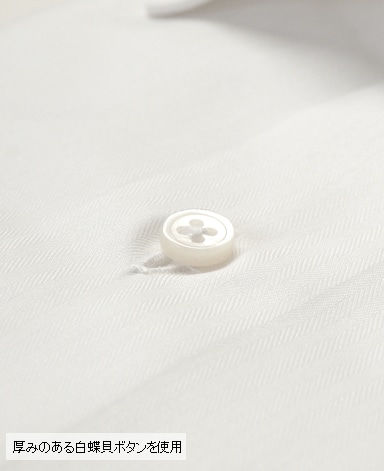 天然白蝶貝使用。その輝きは天然貝の最高級品として世界の高級ドレスシャツに使用されています。