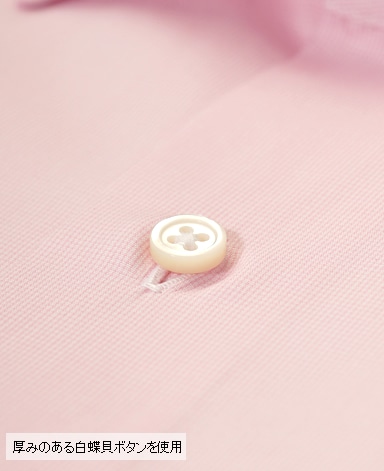 天然白蝶貝使用。その輝きは天然貝の最高級品として世界の高級ドレスシャツに使用されています。