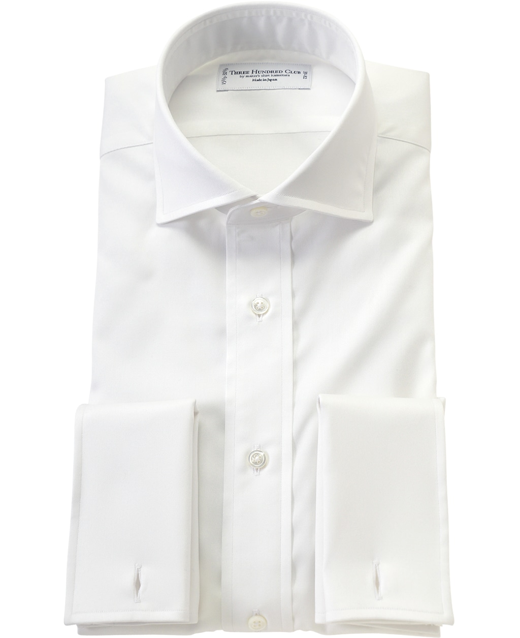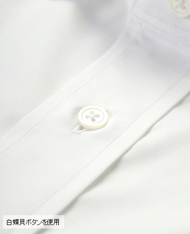 ボタン:白蝶貝最高級の素材と熟練の高度な技が織り成す珠玉の1着がここに誕生しました。その名は『THREE HUNDRED CLUB』。 300番手を使用した幻の生地は、匠を操る職の更なる技を誘発し「一針入魂」の想いで丁寧に縫い上げられます。 しっとりとした肌触り、シルクの様な光沢は、まるで『天女の羽衣』を纏っているかのようです。