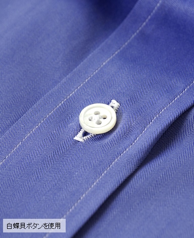 ボタン:白蝶貝最高級の素材と熟練の高度な技が織り成す珠玉の1着がここに誕生しました。その名は『THREE HUNDRED CLUB』。 300番手を使用した幻の生地は、匠を操る職の更なる技を誘発し「一針入魂」の想いで丁寧に縫い上げられます。 しっとりとした肌触り、シルクの様な光沢は、まるで『天女の羽衣』を纏っているかのようです。