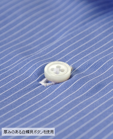 天然白蝶貝使用。その輝きは天然貝の最高級品として世界の高級ドレスシャツに使用されています。