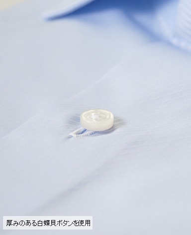 天然白蝶貝使用。その輝きは天然貝の最高級品として世界の高級ドレスシャツに使用されています。