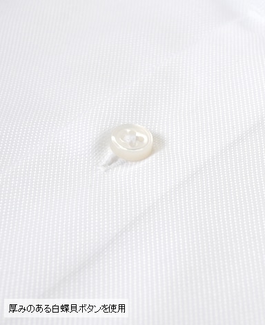 天然白蝶貝使用。その輝きは天然貝の最高級品として世界の高級ドレスシャツに使用されています。