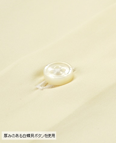 天然白蝶貝使用。その輝きは天然貝の最高級品として世界の高級ドレスシャツに使用されています。