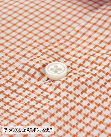 天然白蝶貝使用。その輝きは天然貝の最高級品として世界の高級ドレスシャツに使用されています。