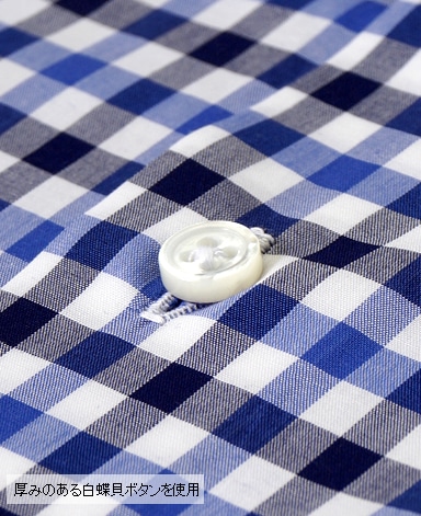 天然白蝶貝使用。その輝きは天然貝の最高級品として世界の高級ドレスシャツに使用されています。