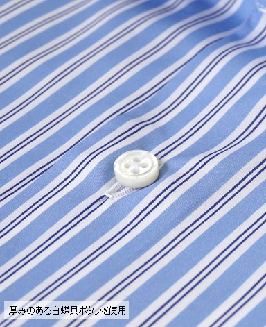 天然白蝶貝使用。その輝きは天然貝の最高級品として世界の高級ドレスシャツに使用されています。