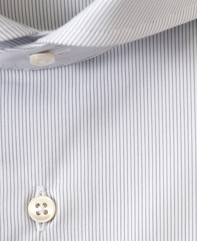 ■襟の表裏のパターンに差をつけ、コンパクトかつ構築的な襟を実現。品の良いドレスシャツの証である、首に巻きつくような内巻きフォルムは、匠によるいせ込み技術の成果です。